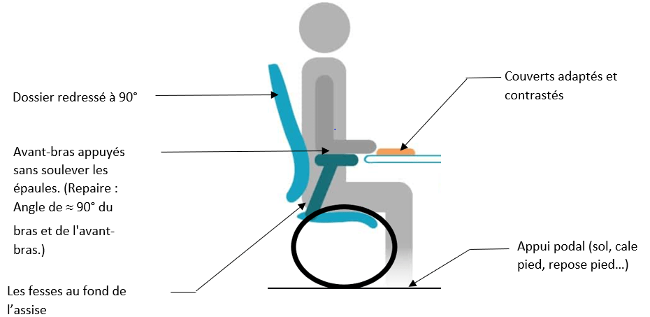 Verticalisation temporaire (ex : installation au fauteuil lors de la prise des repas)